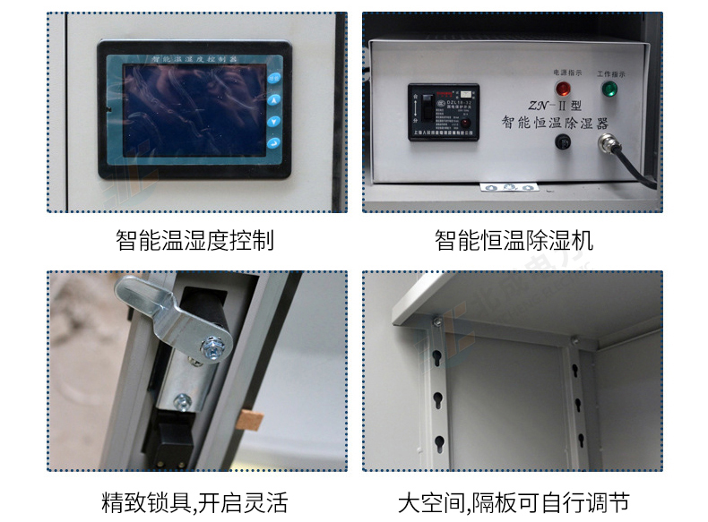 普通智能工具柜里面有一臺除濕機,柜體外面有一個數字顯示器顯示柜內溫濕度,可以通過顯示器上按鍵調節柜內溫濕度大小,結構簡單,操作方便,具體操作詳見智能工具柜說明書