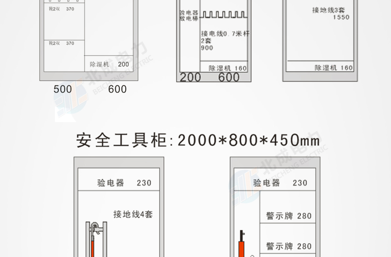 1.電力安全工具柜的規格尺寸為: