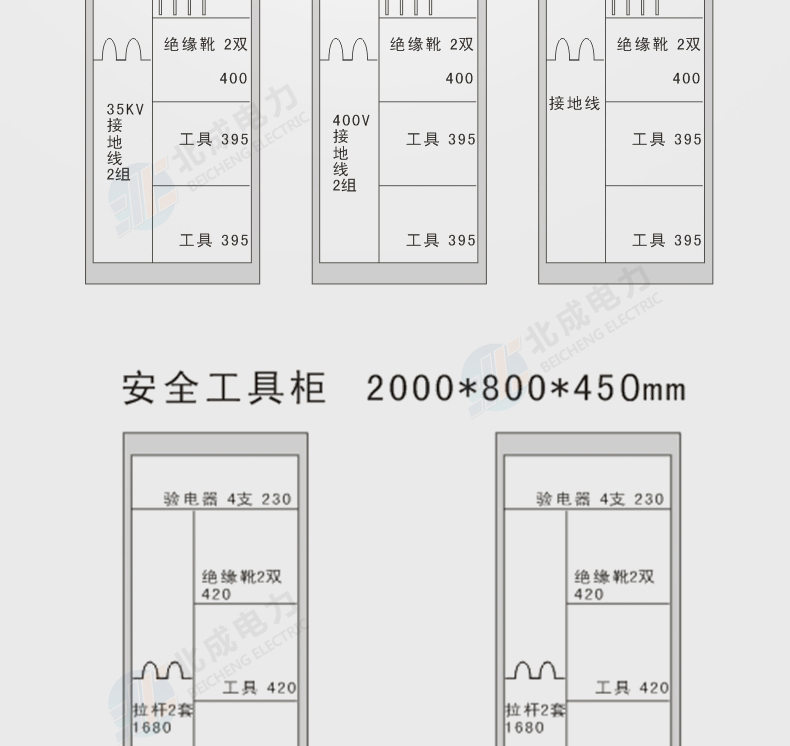 主要用于非絕緣工器具的存放,如安全帶、安全帽、腳扣、安全圍欄、標識牌、接地線、儀器儀表等產品。內部設計可根據客戶要求定制。